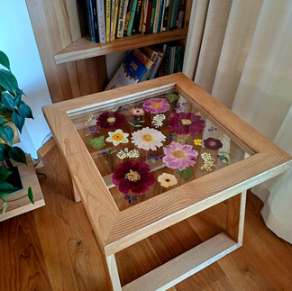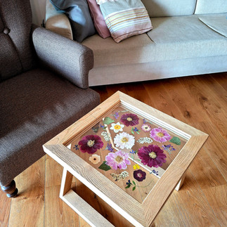 Naše květinové obrazy pro vás vyrábíme už 5 let. Jsou krásné a máte je rádi. Ale už nějakou dobu jsme přemýšleli nad tím, že bychom vám rádi nabídli ještě něco dalšího. Produkt, který by v sobě snoubil naše tradiční materiály – dřevo, sklo a květiny, a přece byl jiný než doposud. Trochu speciální a hodně jedinečný. A tenhle produkt je konečně na světě. Je to náš květinový stolek. Originální designový kousek nábytku, který je krásný a funkční zároveň.